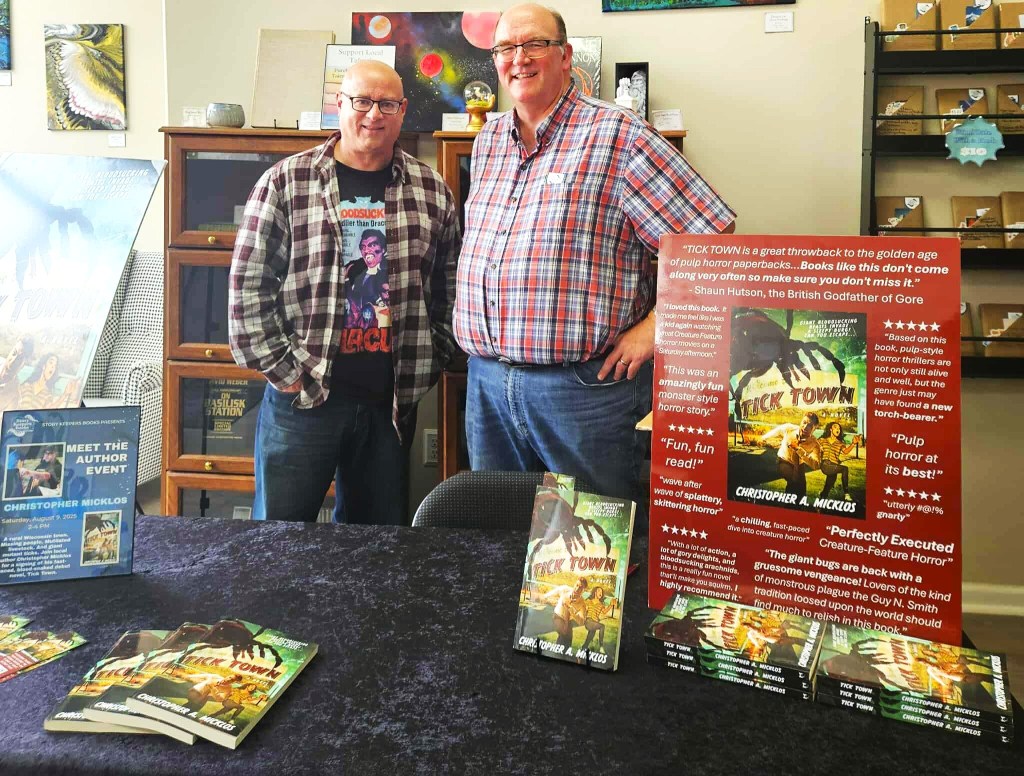 - Come celebrate Indie Bookstore Day at Caramel Crisp Bookstore in Oshkosh and show your support for local indie bookstores and local authors. I’ll be there selling and signing copies of TICK TOWN. I’ll also have copies of the new anthology A WISCONSIN HARVEST OF HORROR, which includes stories by fifteen (15) Wisconsin authors…including my new pulp horror story “Hell Bugs”. Hope to see you there!